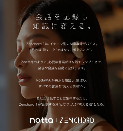 対策はシンプルで、会話の記録とテキスト化を同じ流れに置くこと。Zenchord 1 はNottaと連携し、会議や講義の内容を文字起こし・要約・翻訳できる設計として紹介されています。バラバラ管理が減るだけで、議事録の心理的負担が下がります。